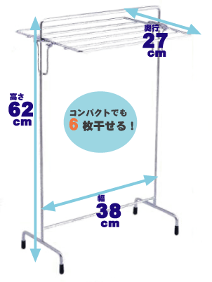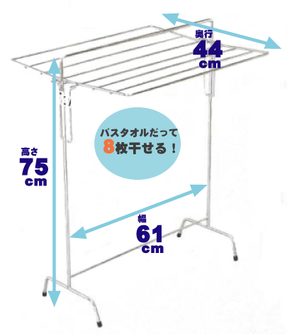 ●サイズ:460×440×655mm●素材:鉄にクロームメッキ仕上げ日本製●タオルスタンド S/M/L (株)横山スチール 温泉旅館やホテルなどのバスルーム。そこでみかける、あのタオルスタンドです。軽量なのに丈夫。安心の国産で、使用しないときにはタオルを干す部分が折りたため、コンパクトに収納できます。さびにくいクロームメッキ加工ずみ。SサイズはこちらLサイズはこちら